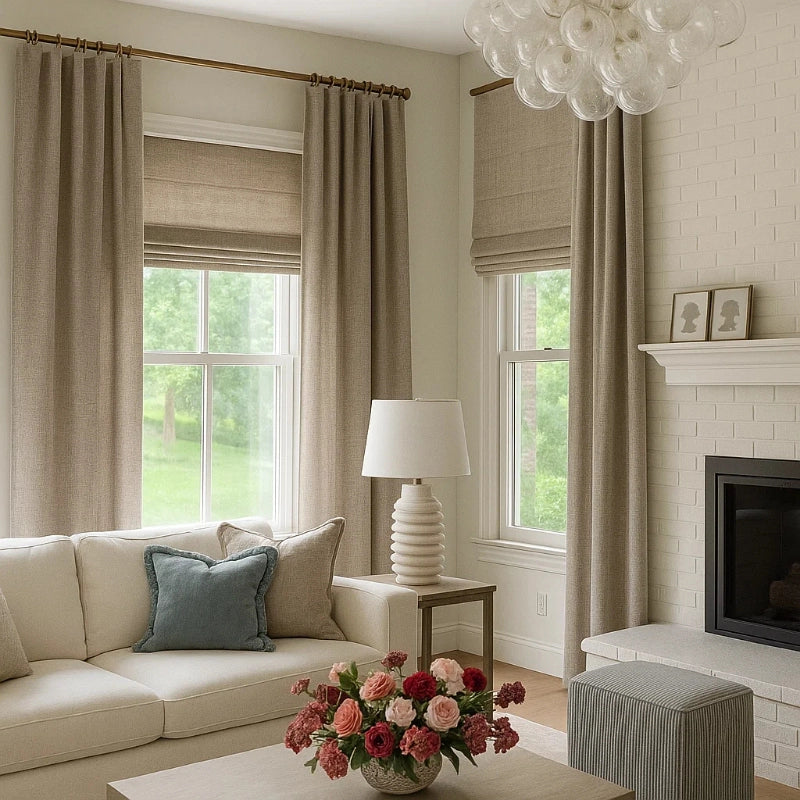 OUOIO Custom 100% Blackout Linen Roman Shades