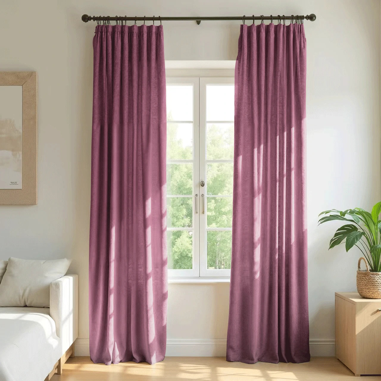 Made from natural flax fibers, linen is breathable, eco-friendly, and ideal for regulating light and airflow. Its soft texture and airy drape add effortless charm to any room, while also helping reduce indoor heat. Whether you’re styling a living room or bedroom, linen curtains bring a timeless, organic look that suits both minimalist and cozy interiors. Choose linen fabric curtains for a durable, sustainable, and naturally beautiful window treatment.