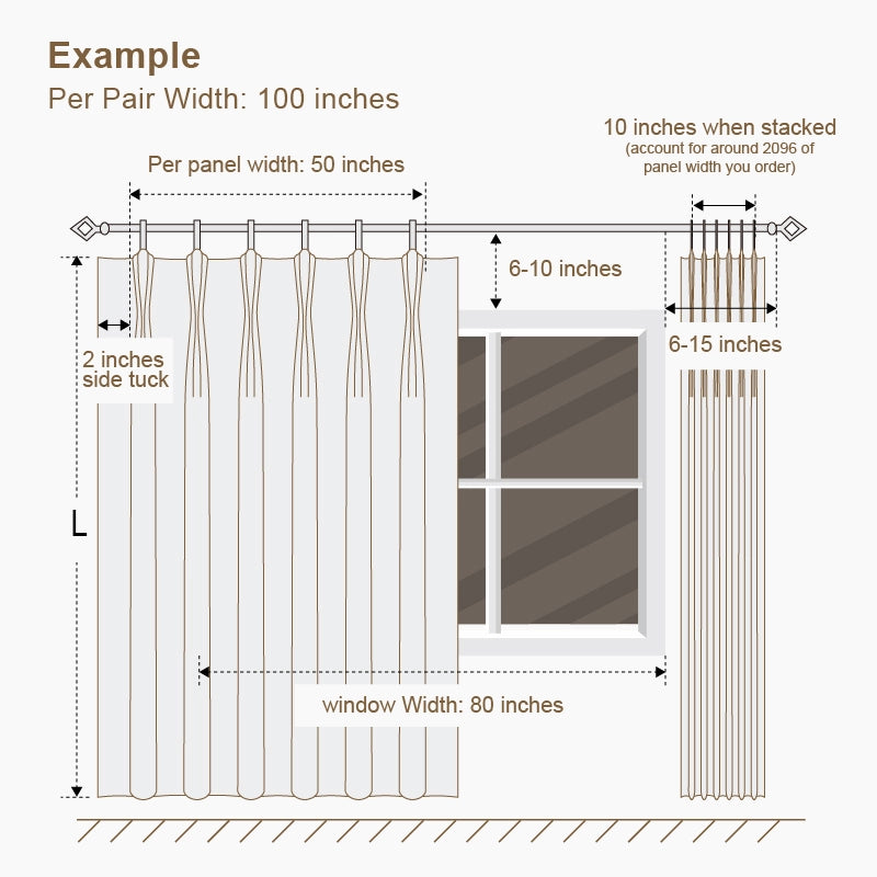 For pleats are permanently sewn to make, we normally make them in 200-230% fullness. For example, if rod or track length is 100 inches, you may order 2 panels each 50 inches width for pinch pleated, tailor pleated header style. You could also order more width if you prefer more fullness.