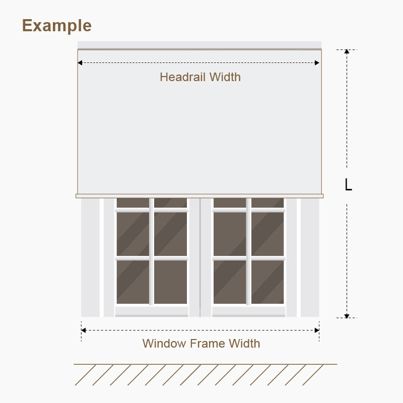 - Outside Mounted: Measure the window frame width and height. Add 2-4 inches to the window frame width and 8-10 inches to the window frame height. Install on the frame, shade size could be the same or slightly smaller than the window size. If your windows are close to each other, you can use the width of the window