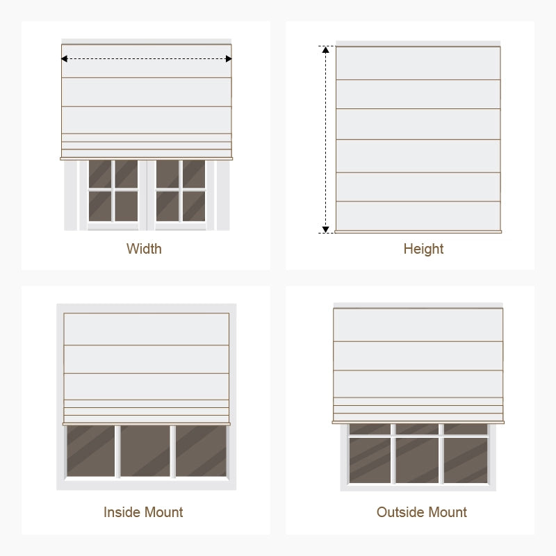 - Inside Mounted: Measure the window inside width and height. Deduct 3/8 inch on the window width to get the shade width to ensure a proper fit inside the window frame, shade height could be the same as the window height. Ensure you have enough window depth, at least 2 1/2 inches.